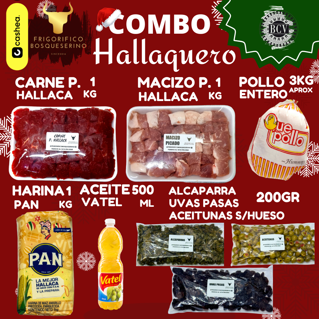 Prepárese para elaborar 45 hallacas venezolanas auténticas y deliciosas con la máxima comodidad. Nuestro Combo Hallaquero le ofrece todos los ingredientes frescos, medidos y de primera calidad, eliminando las tediosas compras y garantizando un sabor inigualable. Ideal para compartir la magia de la Navidad sin el estrés de la búsqueda.