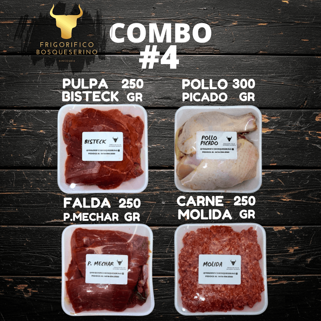 COMBO DE CARNE SEMANAL, DE CALIDAD Y FRESCURA! BBISTECK DE PULPA 250GR, FALDA PARA MECHAR 250GR, CARNE MOLIDA 250, POLLO PICADO 300GR