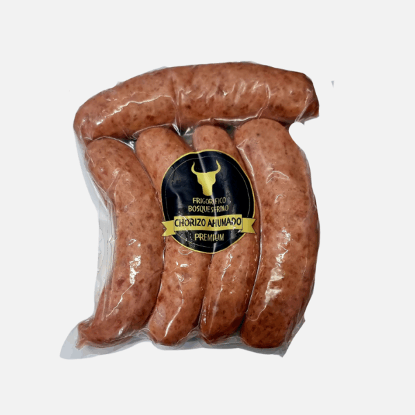 Chorizo parrillero de ajo ahumado, empacado al vacío y fabricación propia. Producto de la casa.